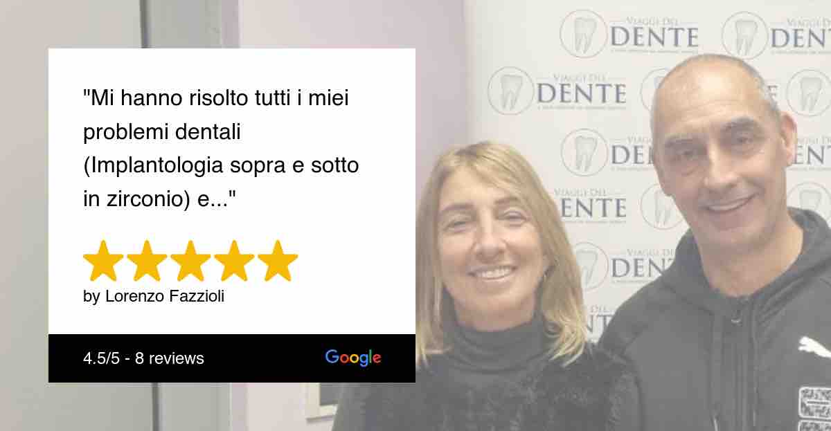 La soddisfazione dei nostri pazienti è la nostra migliore garanzia. Scopri le recensioni reali su Google di chi ha scelto Viaggi del Dente.